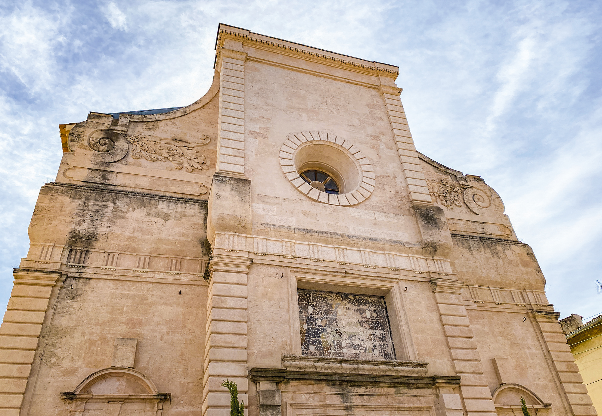 L’Eglise actuelle a été construite de 1603 à 1626, en agrandissant la petite chapelle primitive. Le bâtiment mesure 44 mètres de long sur 25 mètres de large et a une hauteur de 22,5 mètres. Chacun de ses piliers couvre une surface de 9m2 avec des murs allant jusqu’à 2 mètres d’épaisseur. C’est un édifice remarquable de sobriété avec trois nefs de quatre travées chacune, voûtées de croisées d’ogives, des arcs plein cintre et des piles carrées et massives.