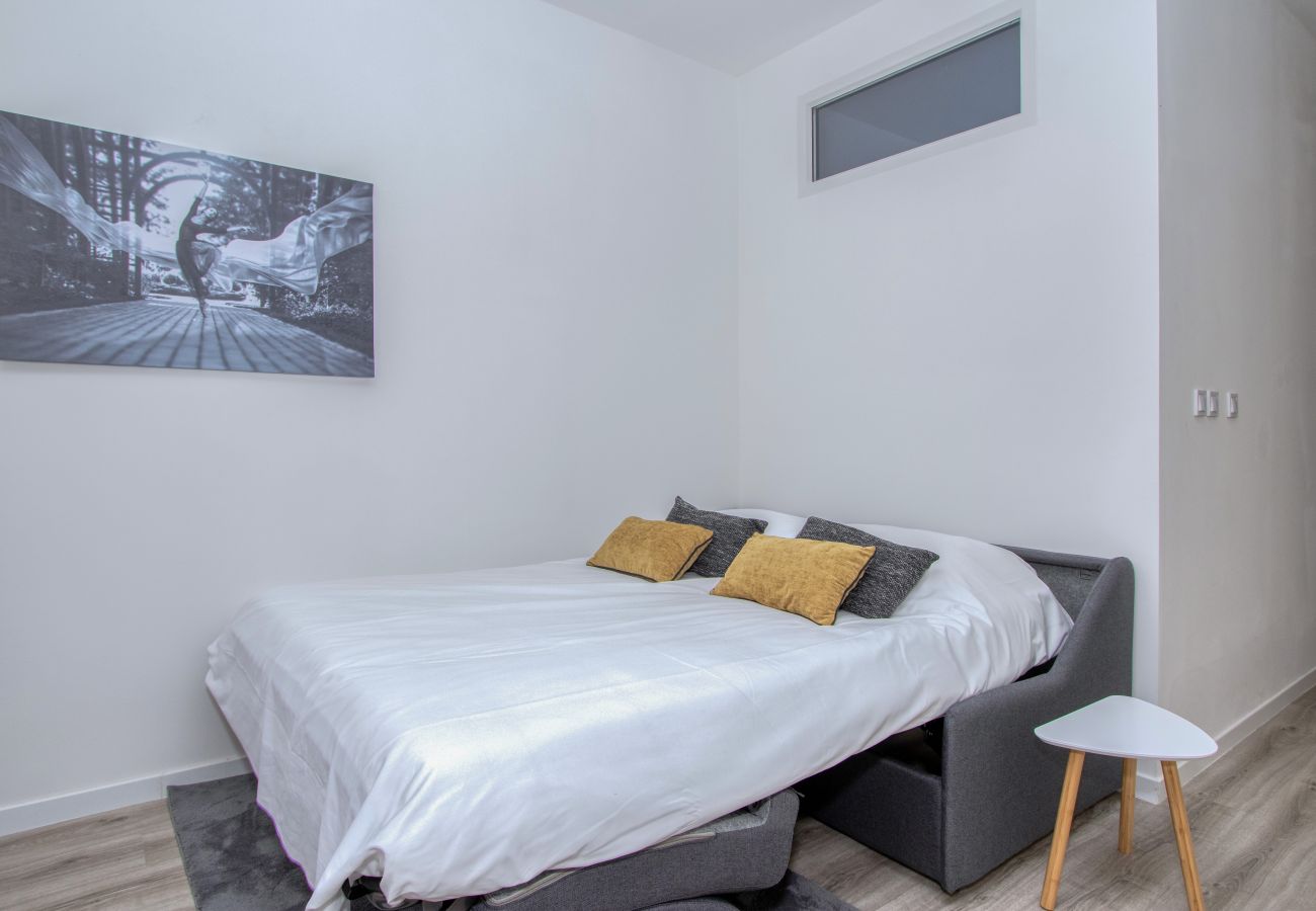 Tout d’abord une chambre avec 2 lits simples pouvant être rapprochés pour se transformer en un lit double de 160 x 200. Cette chambre offre deux armoires indépendantes. Une petite chambre est équipée d’un lit simple de 90 x 200 avec un petit bureau et une armoire. Dans le salon, un canapé convertible en un véritable lit double de 140 x 190 offre une bonne qualité de couchage.