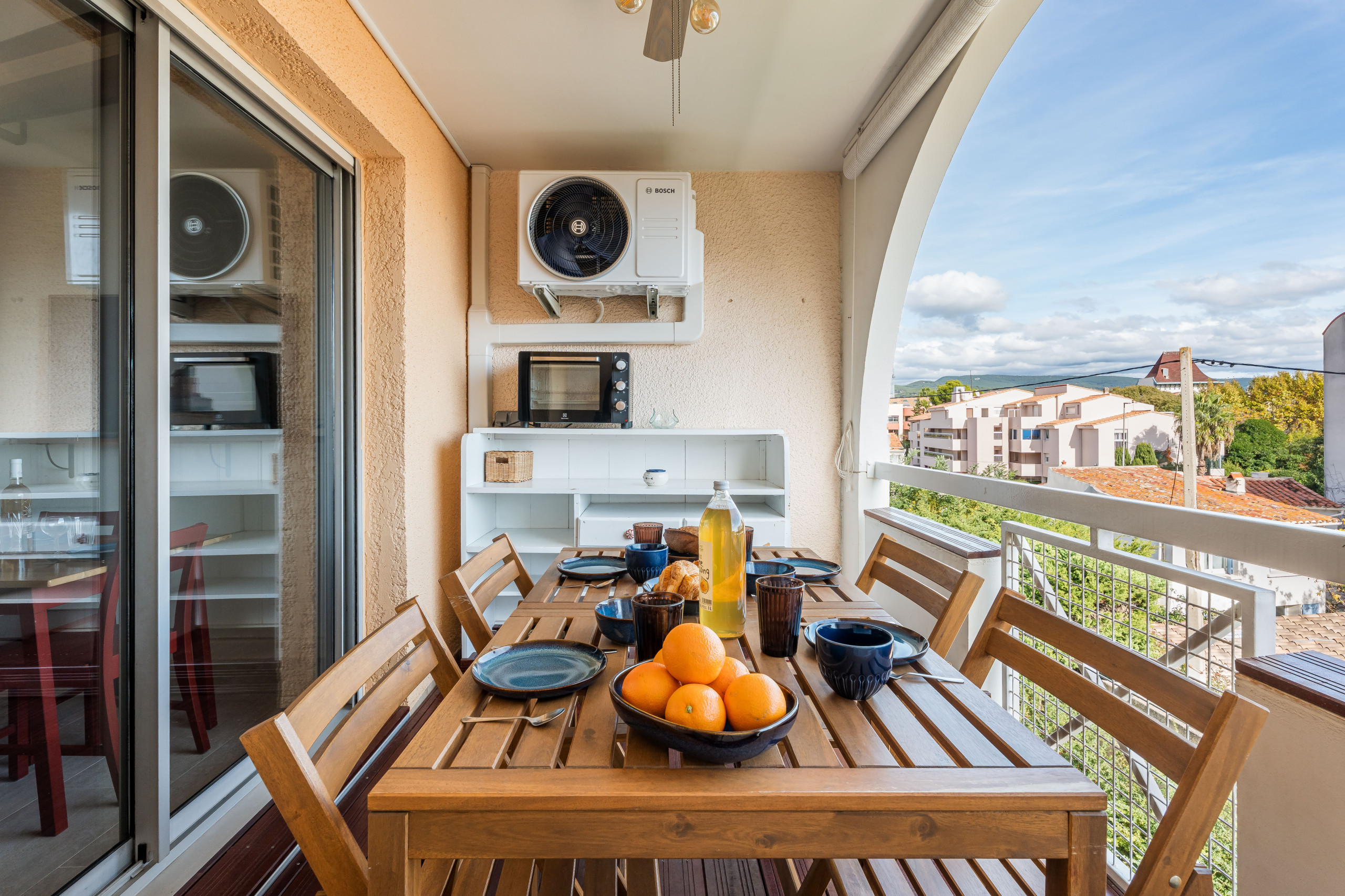 Elle dispose de 6 m² de terrasse, lave-linge, sèche-linge, fer à repasser, accès internet (wifi), sèche-cheveux, balcon, chauffage pompe à chaleur, climatisation dans le salon et certaines chambres, parking extérieur bâtiment proche, 1 Télévision.