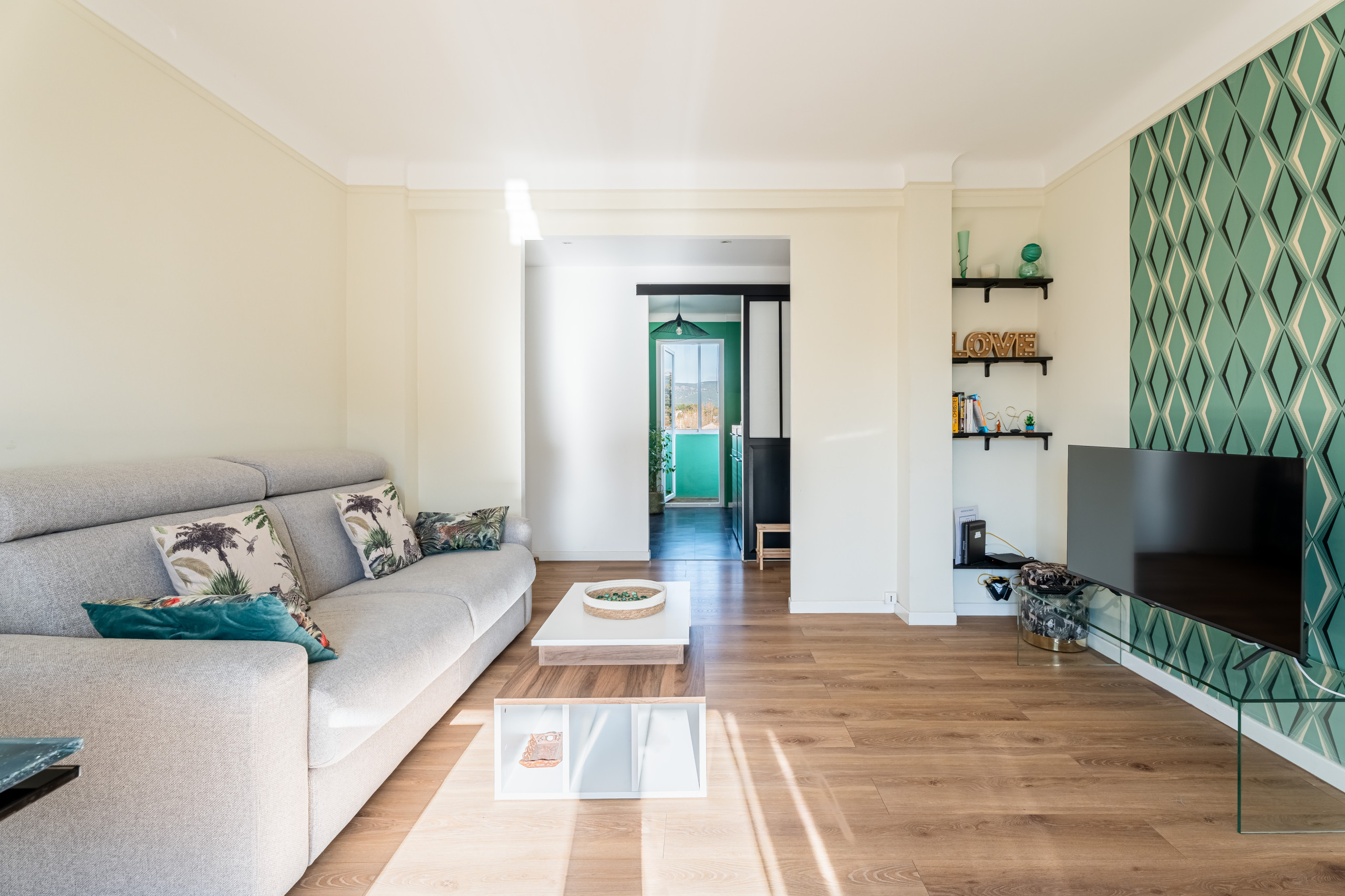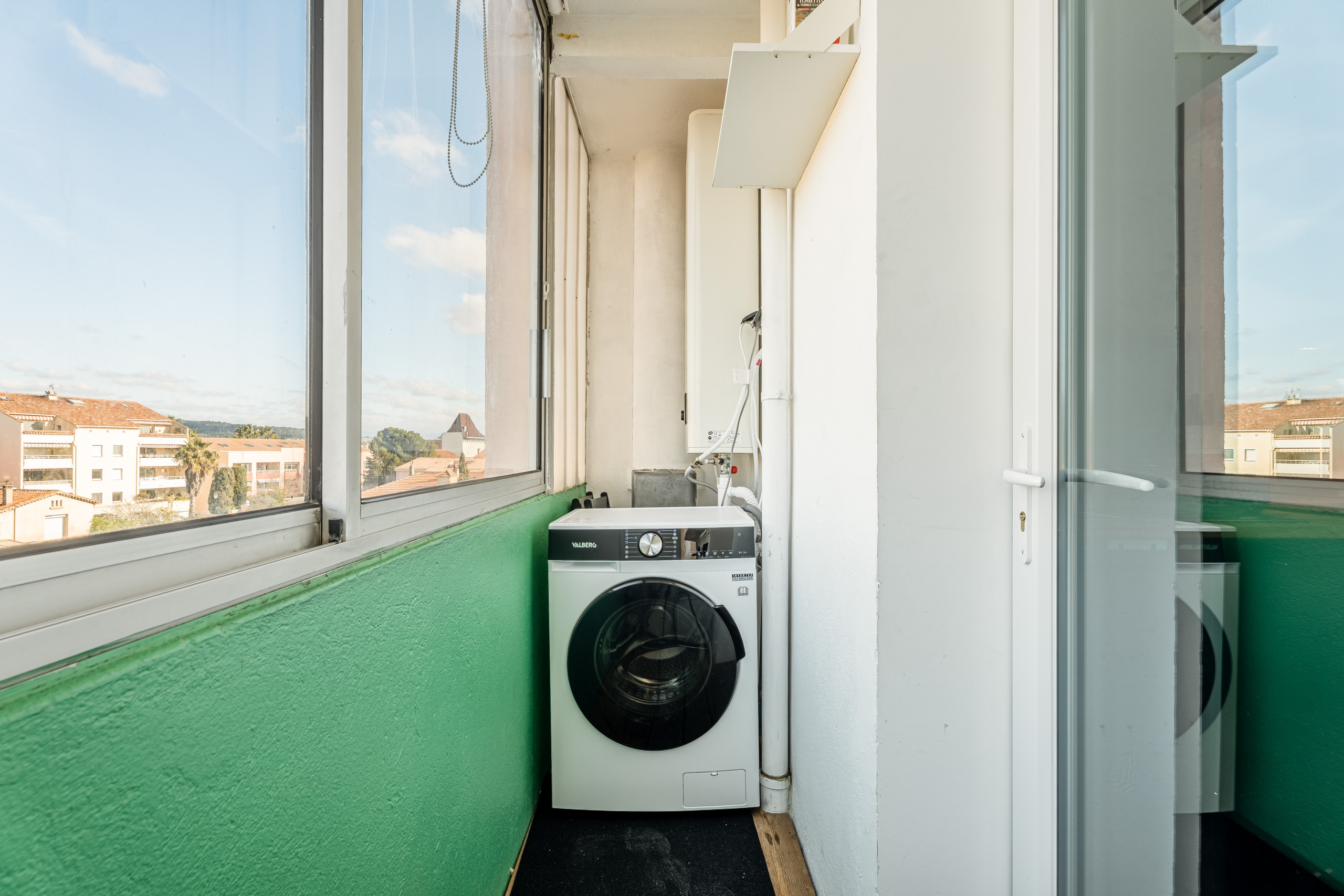 L’appartement est situé en zone urbaine, vous aurez de ce fait une ambiance sonore citadine sur le balcon. Le bruit de circulation n’est en revanche pas perceptible fenêtres fermées côté sud en raison de la qualité du double vitrage. La chambre côté nord donne sur le parking, c’est un espace calme.