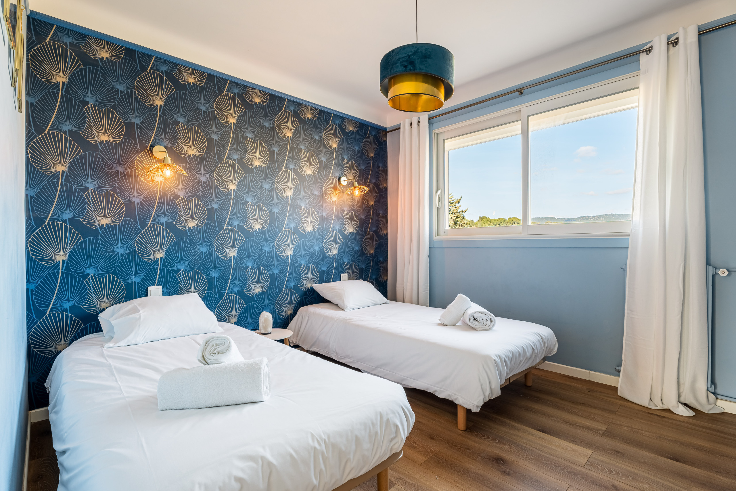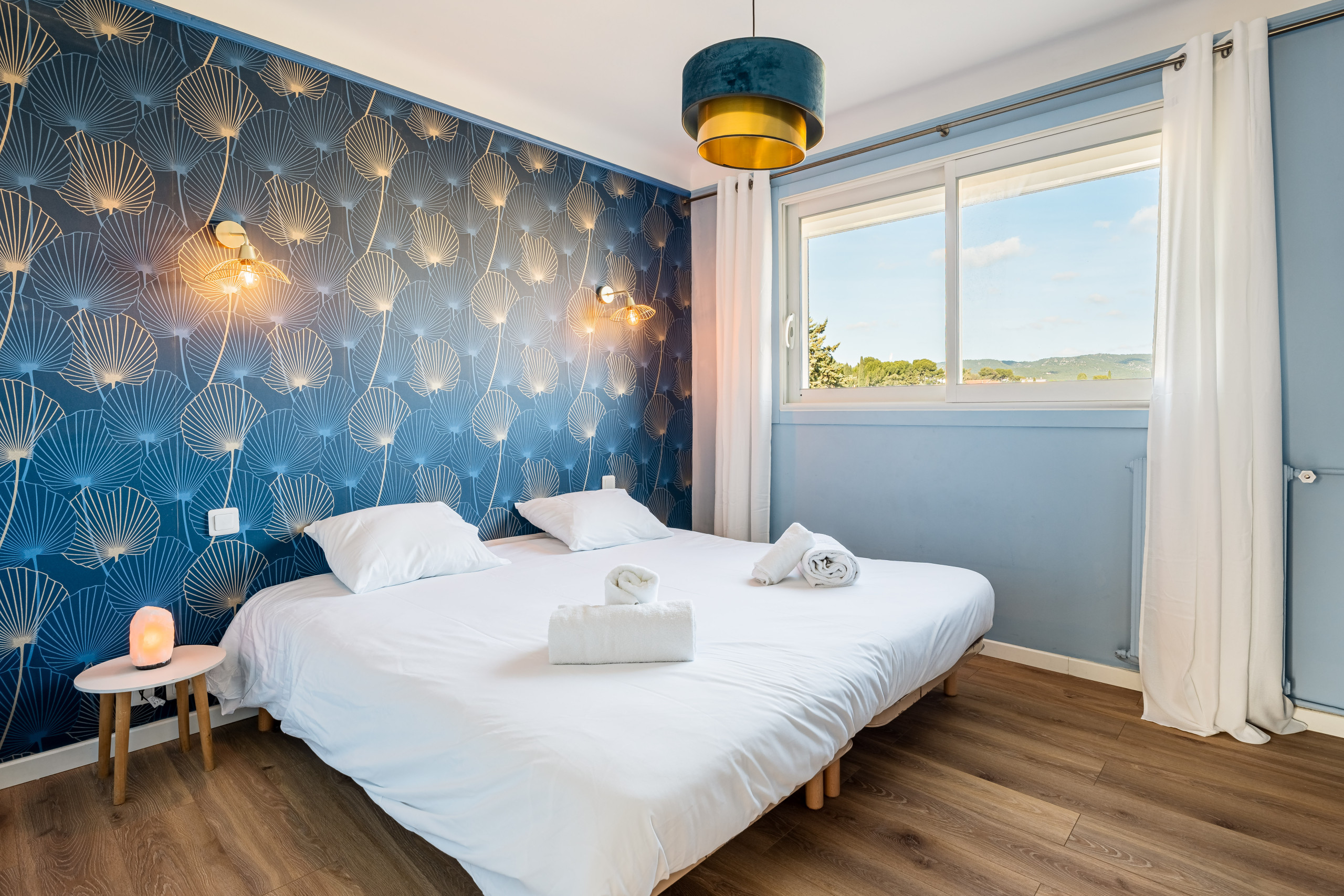 Pour votre confort, l’espace nuit est séparé de la pièce de vie par une porte. Il offre deux jolies chambres avec une décoration donnant à chacune une identité distincte.