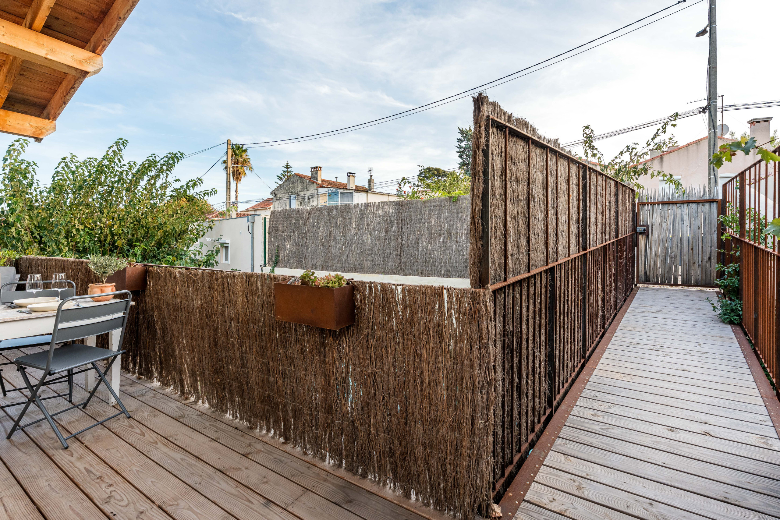 Autres éléments au charme singulier, l’appartement est accessible par une magnifique passerelle en bois et acier Corten.