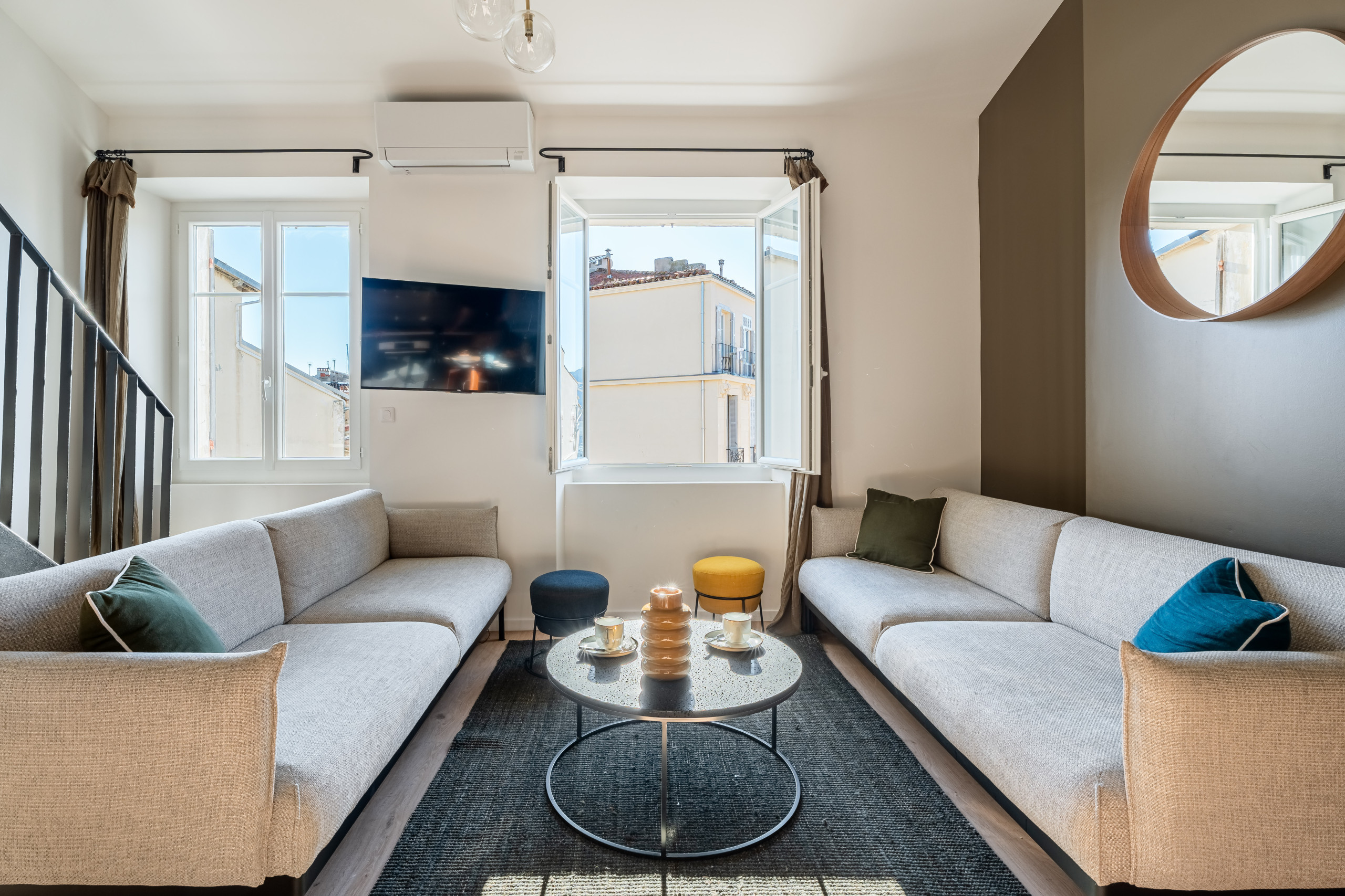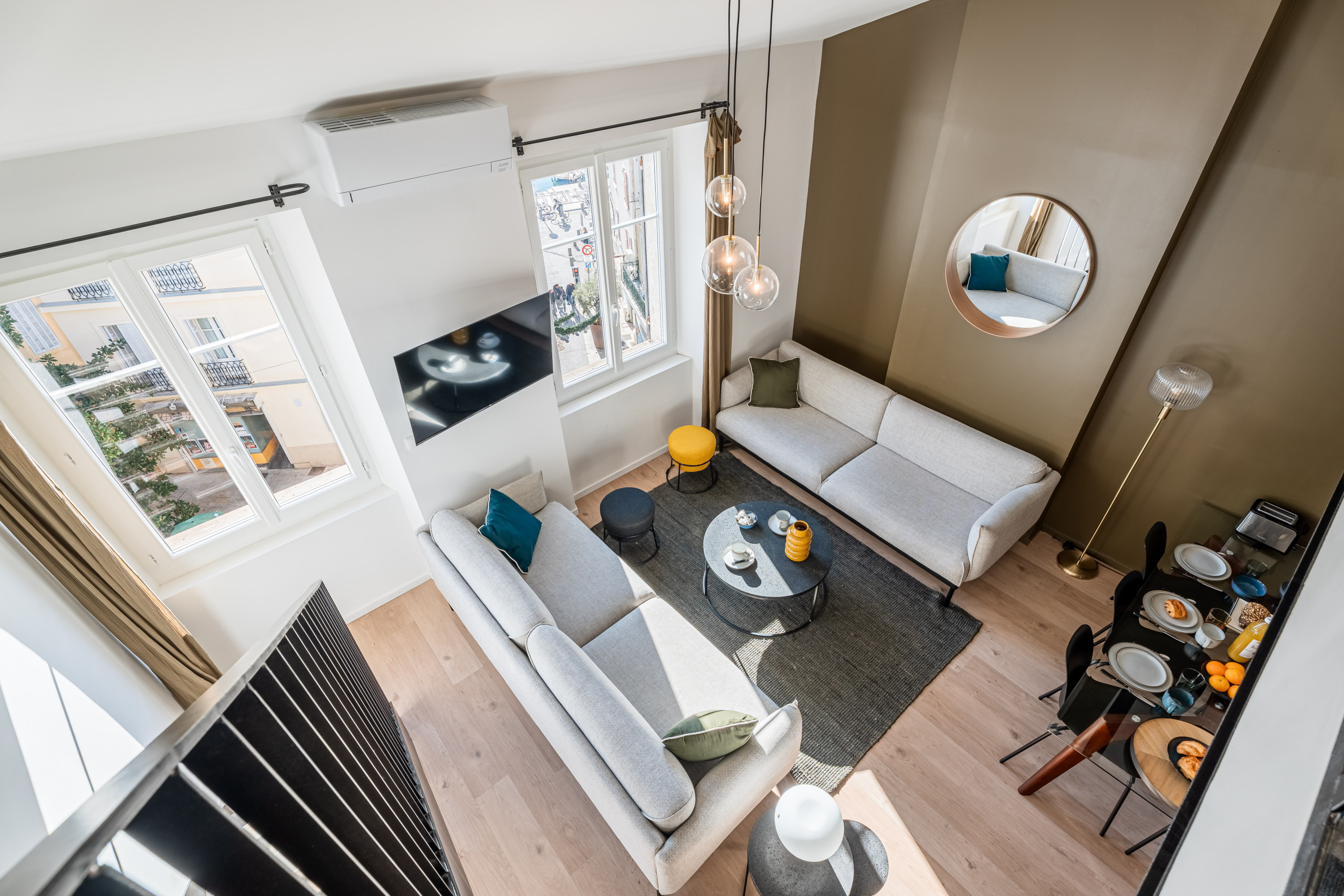 Ce duplex entièrement climatisé se situe au troisième étage sans ascenseur d’un immeuble typique au calme.
