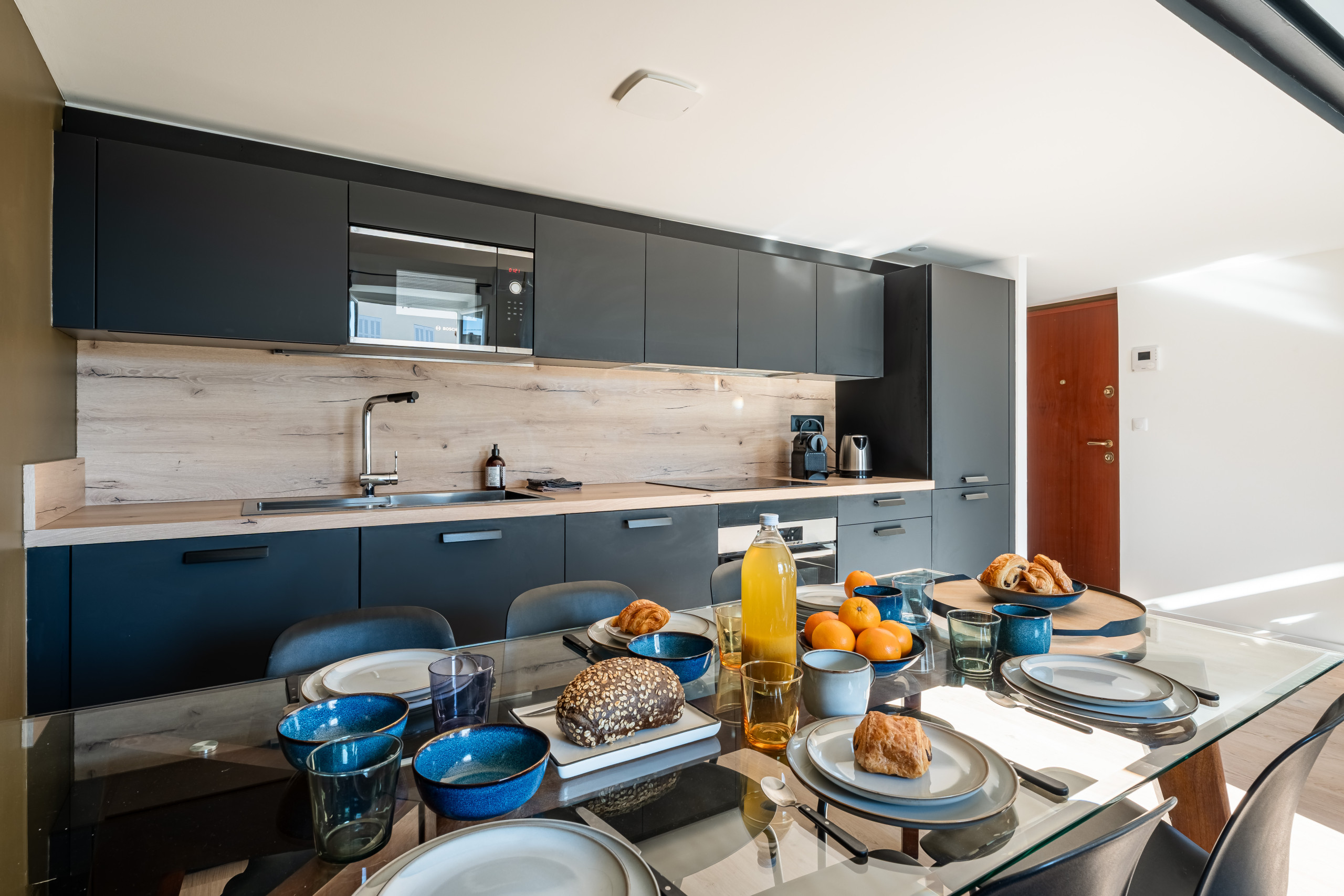 L’appartement est notamment équipé d’un lave-linge, lave-vaisselle, cafetière Nespresso, bouilloire, grille-pain, micro-onde.