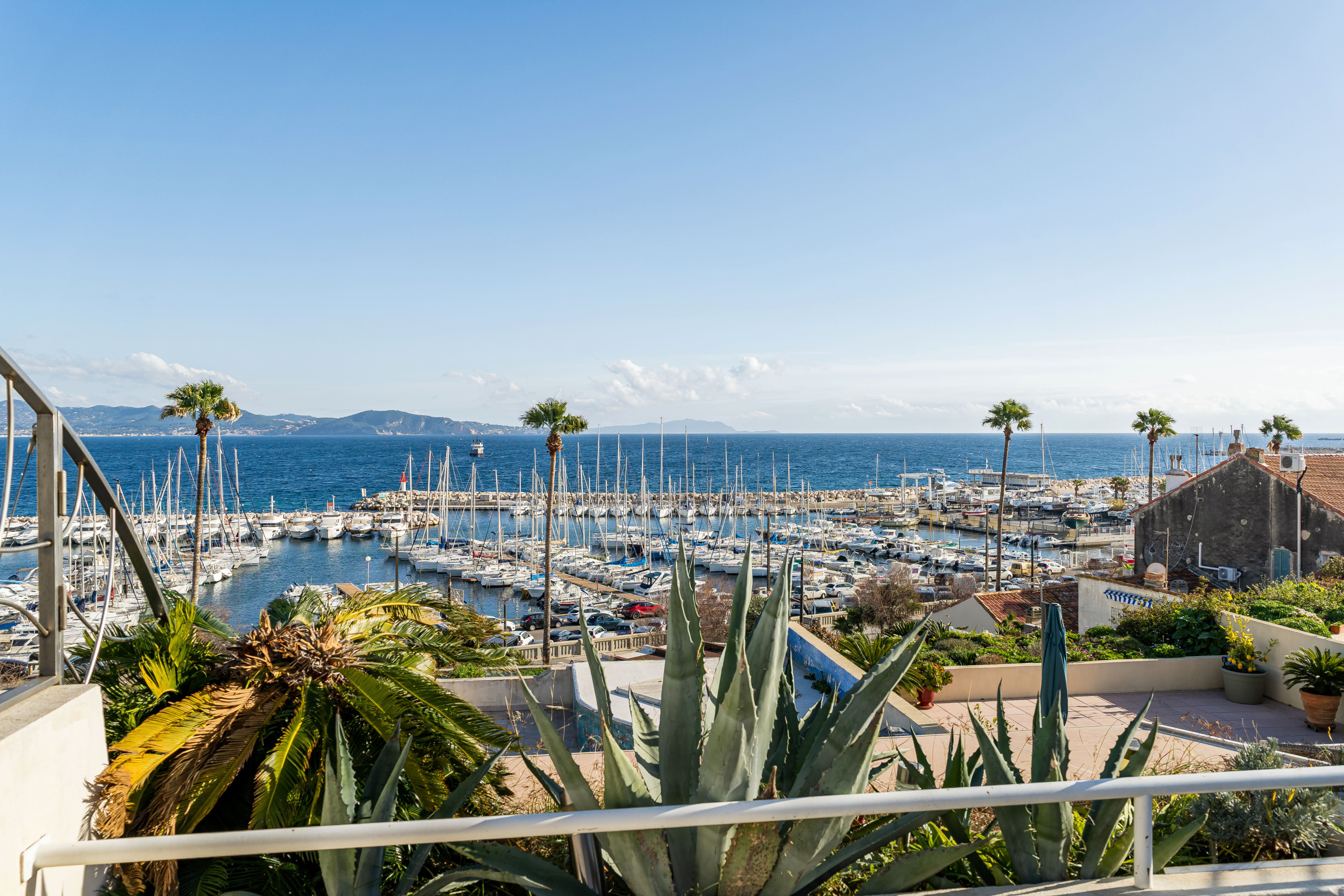 Le premier est incontestablement pour la vue depuis la pièce de vie et la terrasse. Chaque jour le spectacle est renouvelé avec cette vue exceptionnelle sur le Golfe d’Amour. Vous ne vous lasserez pas de la diversité des levés de soleil aux milles couleurs sur la pointe de la Madrague. C’est un festival.