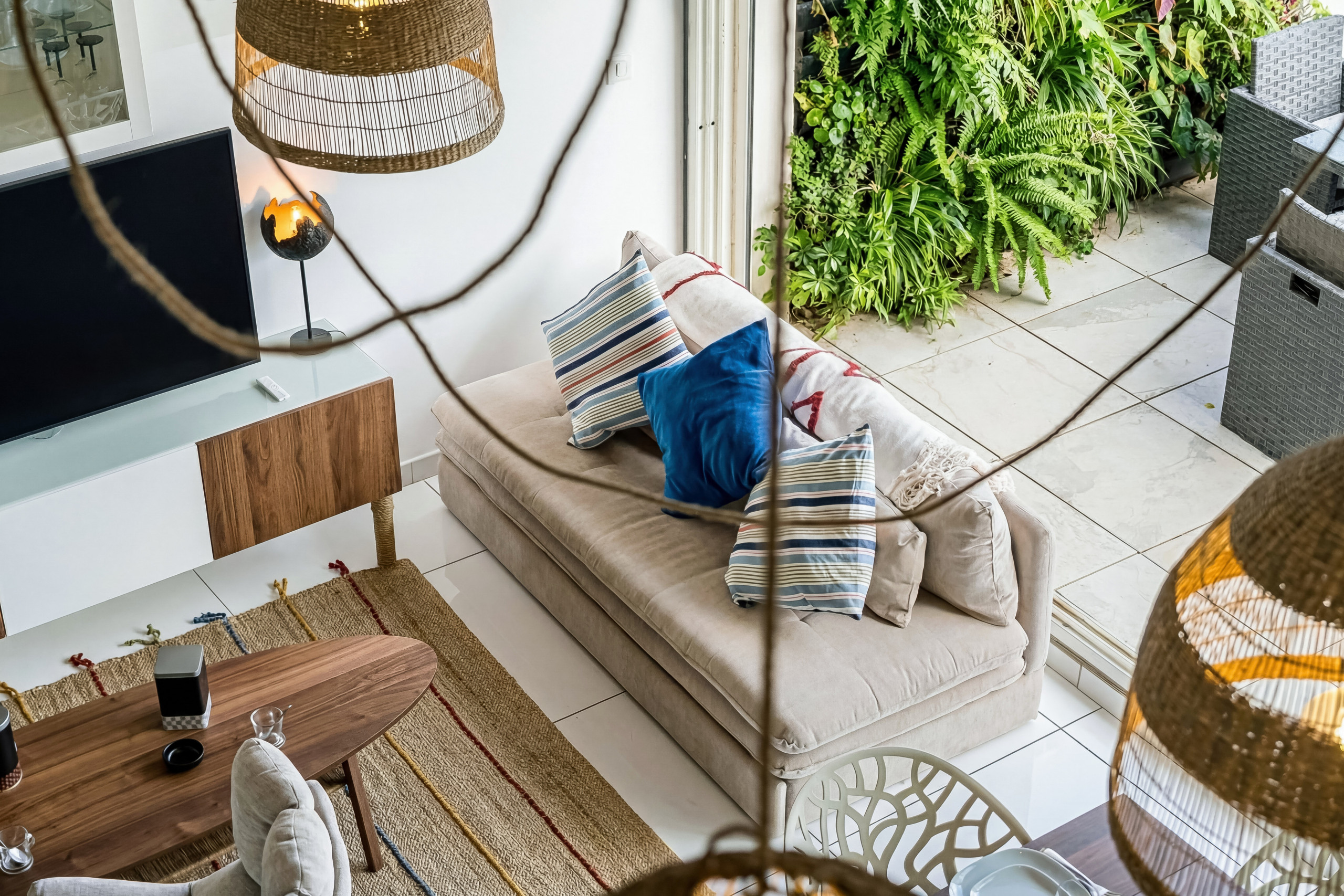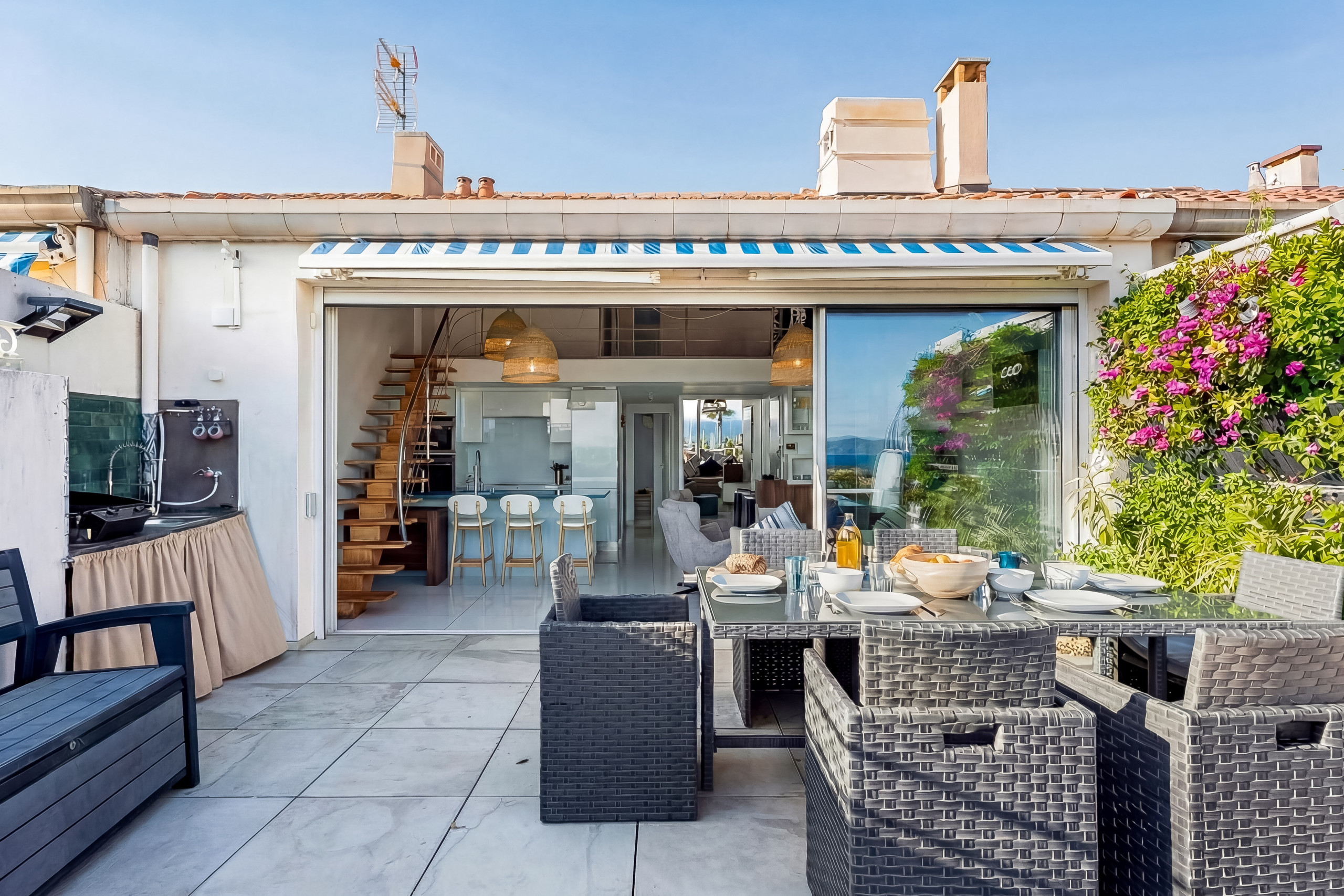 La terrasse végétalisée de 28m² est particulièrement agréable avec son jacuzzi, sa plancha, son espace repas. C’est un lieu de convivialité qui vous laissera les souvenirs des bons moments passés avec vos proches.