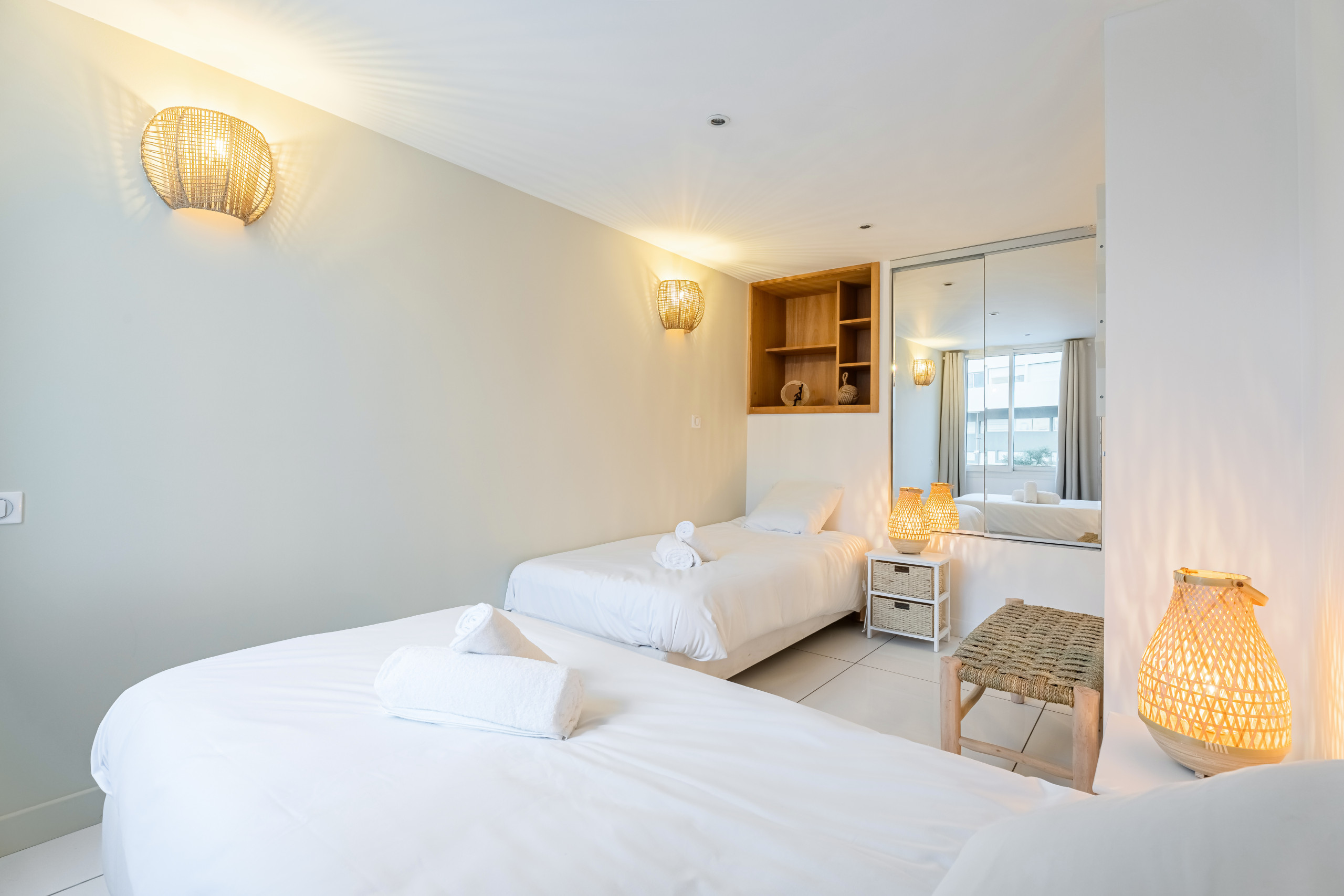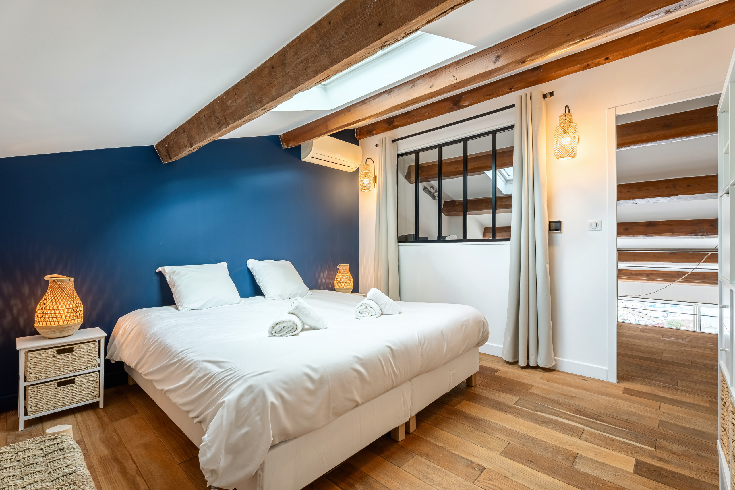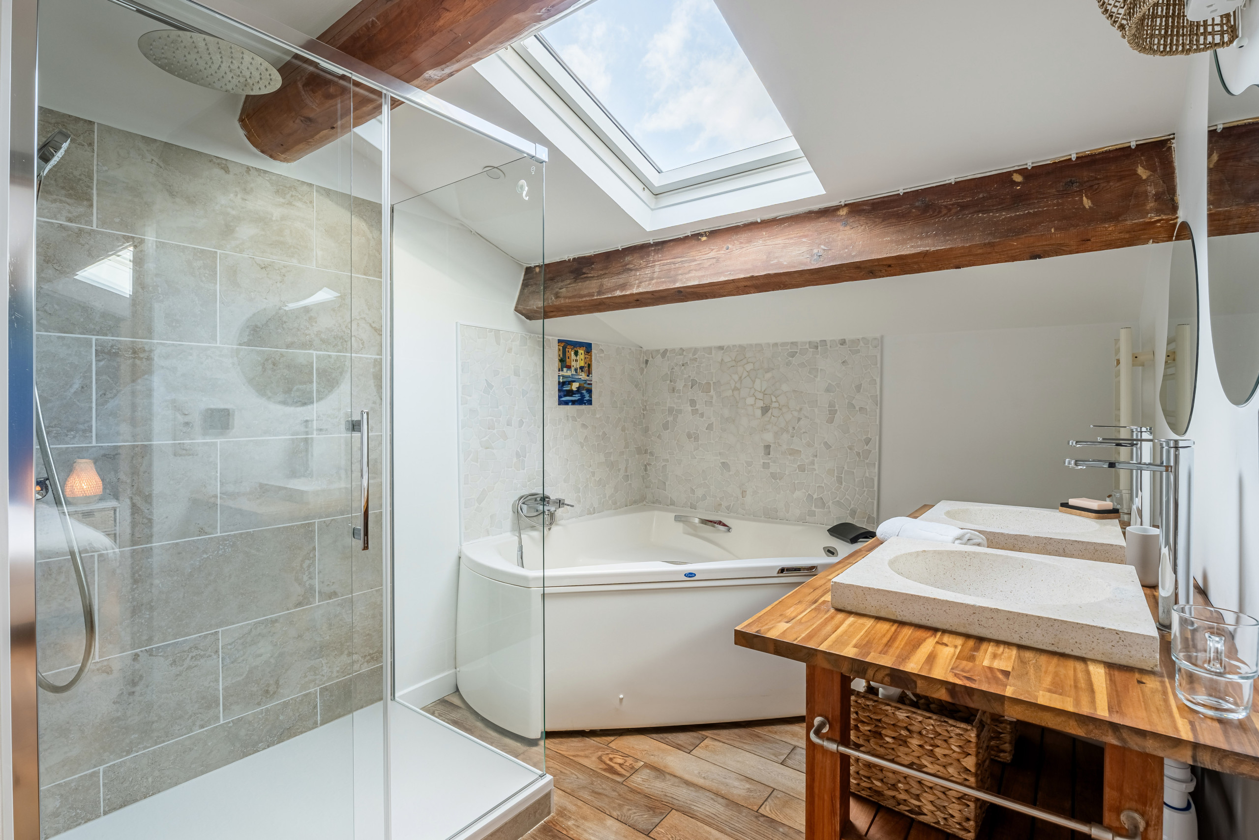 La décoration moderne et raffinée s’appuie sur un doux équilibre entre le bois et des couleurs claires et reposantes. Il se dégage un esprit, une ambiance cosy que vous saurez apprécier pour vous délasser.