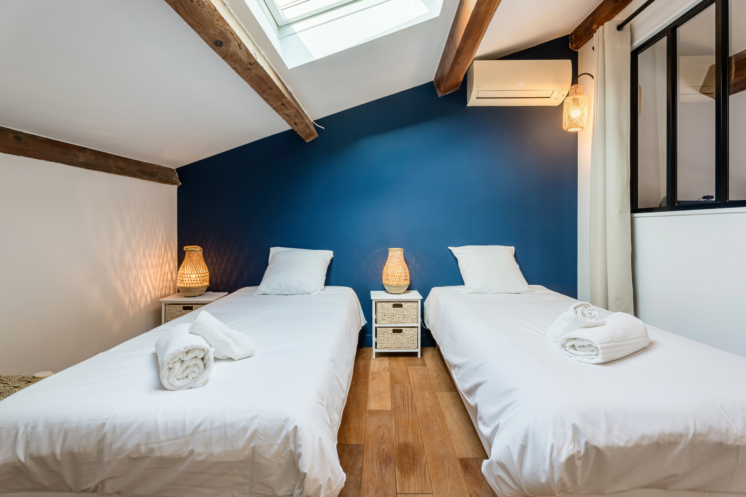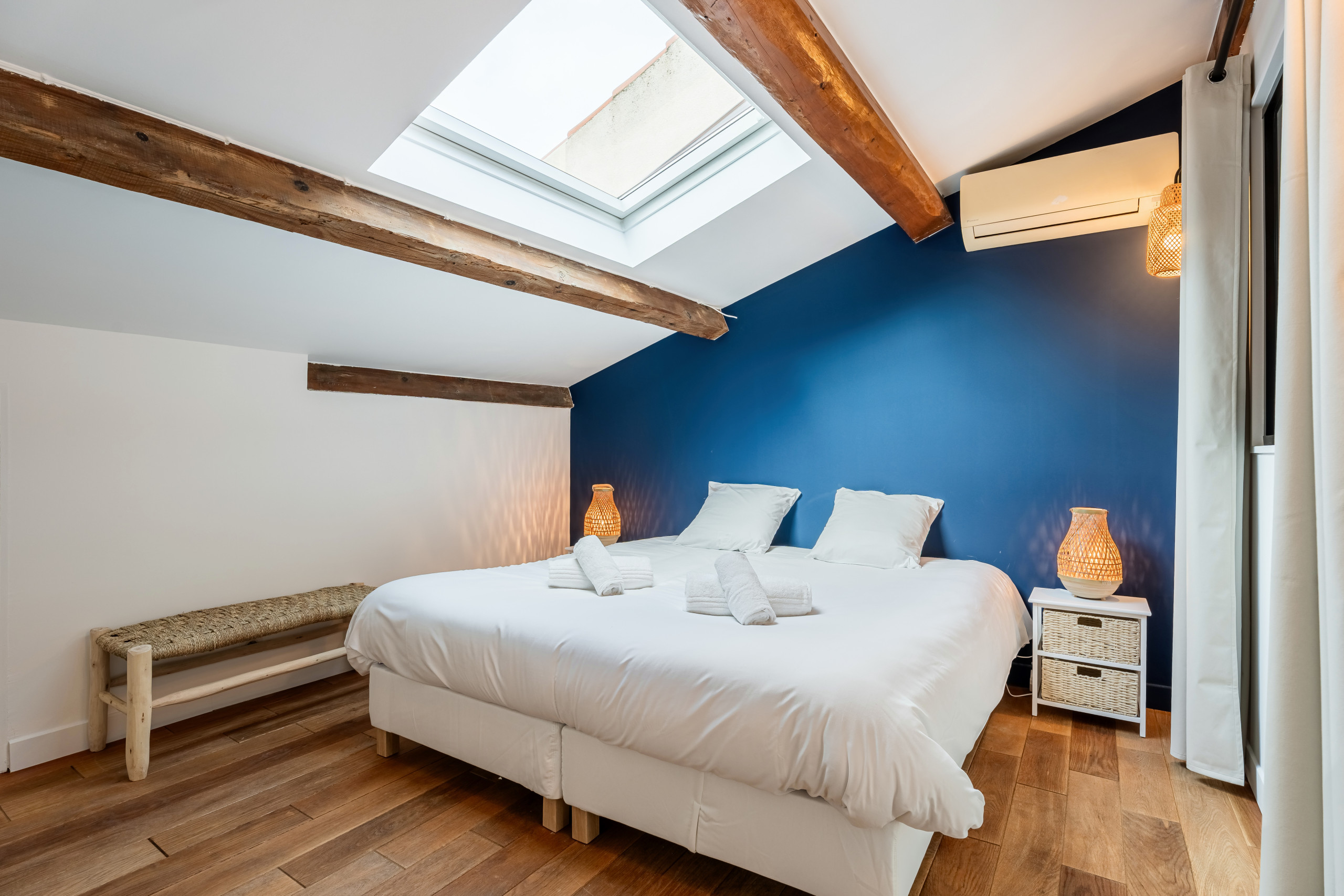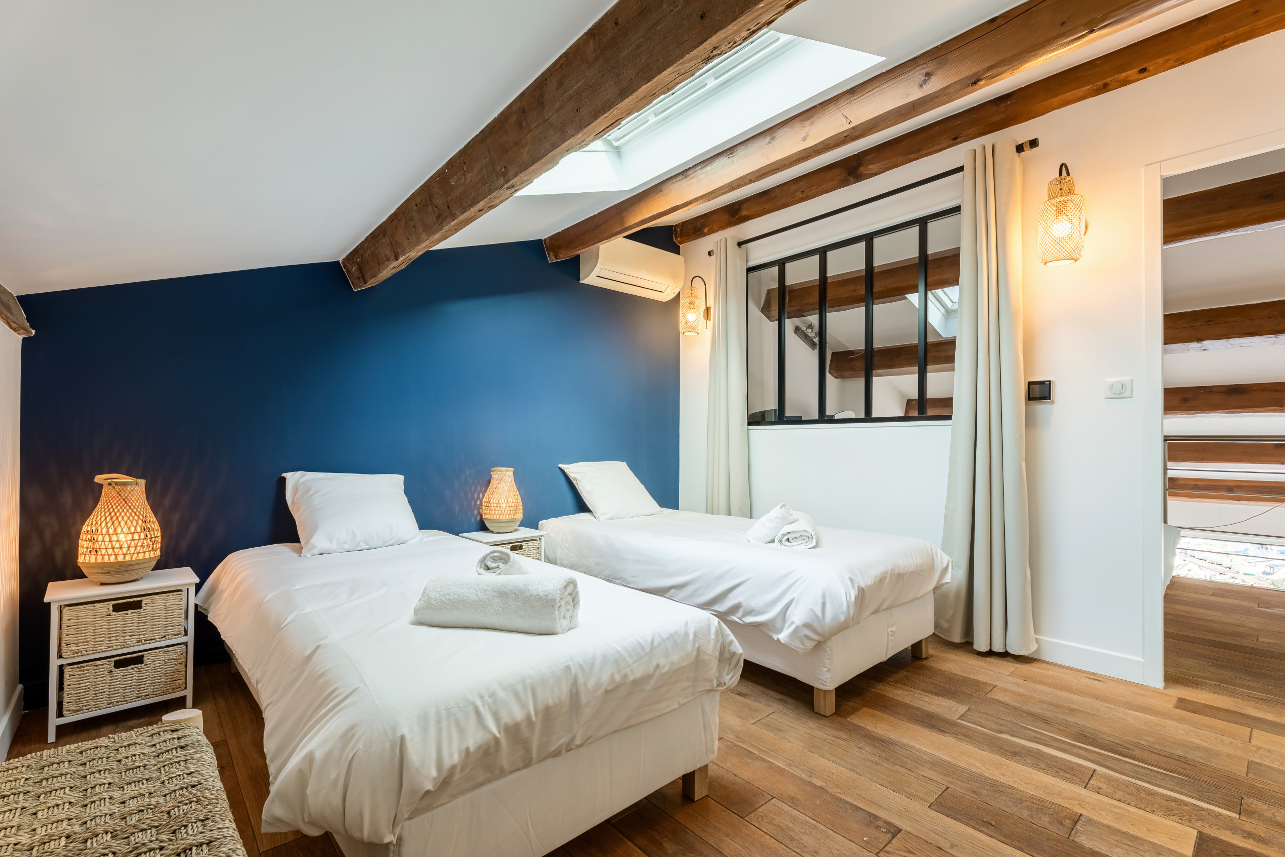 La décoration moderne et raffinée s’appuie sur un doux équilibre entre le bois et des couleurs claires et reposantes. Il se dégage un esprit, une ambiance cosy que vous saurez apprécier pour vous délasser.