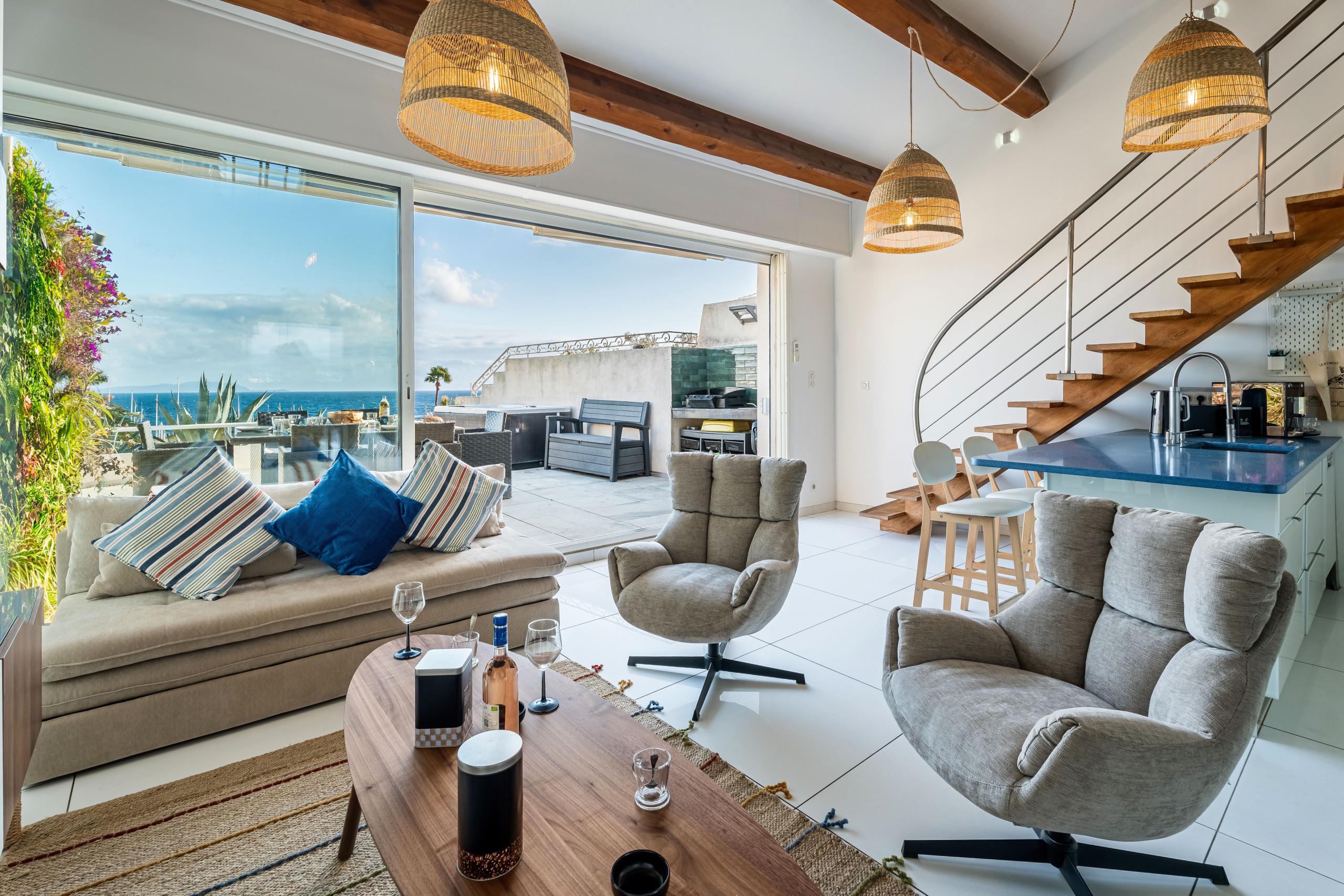 Autre atout, sa vue mer exceptionnelle dont vous saurez profiter pleinement en terrasse au chaud dans le jacuzzi.