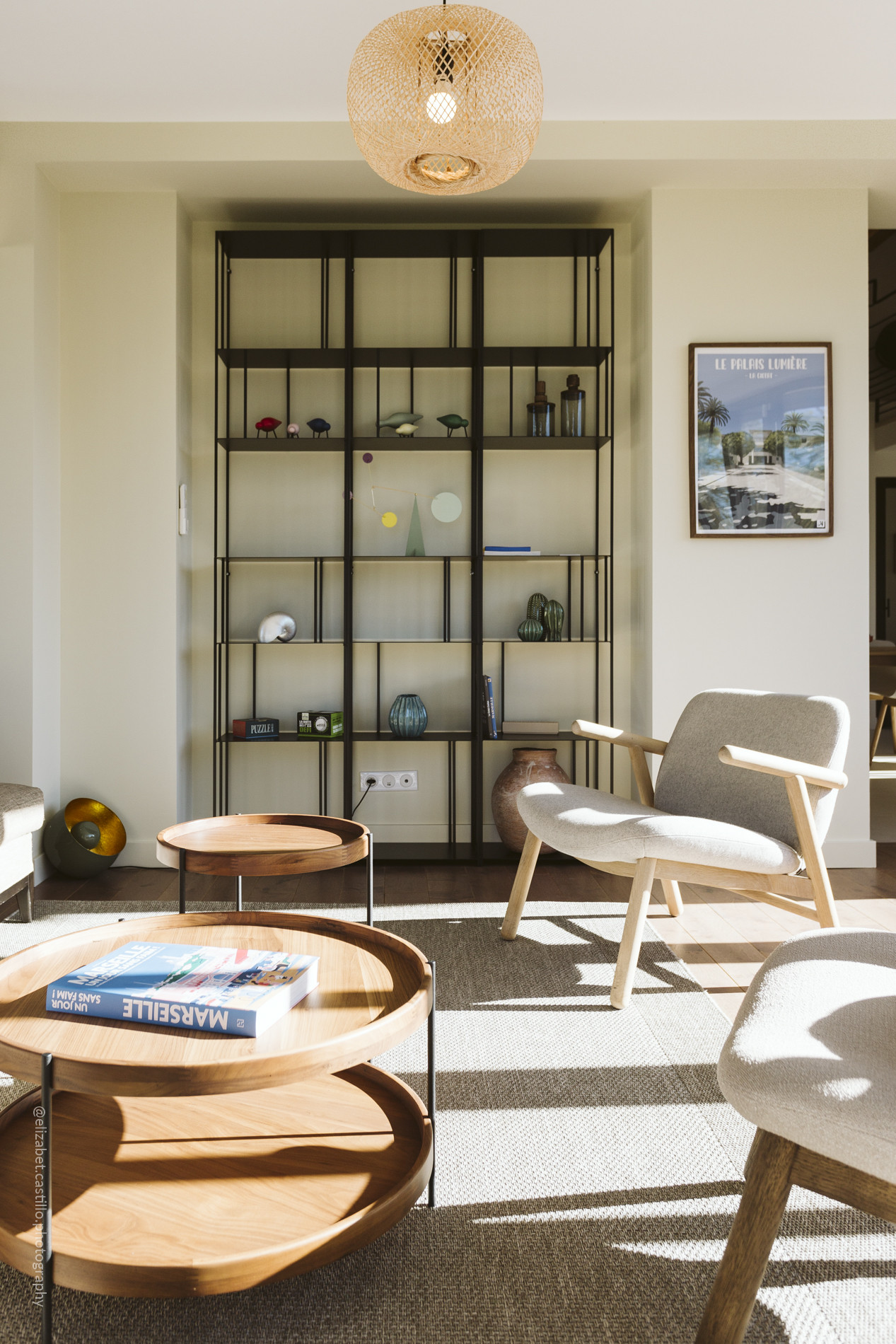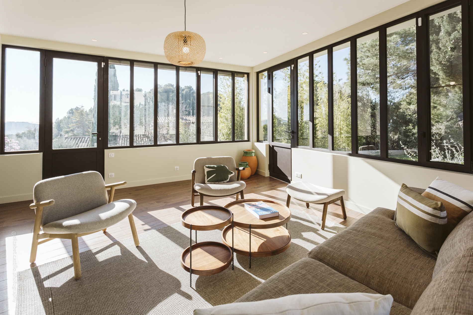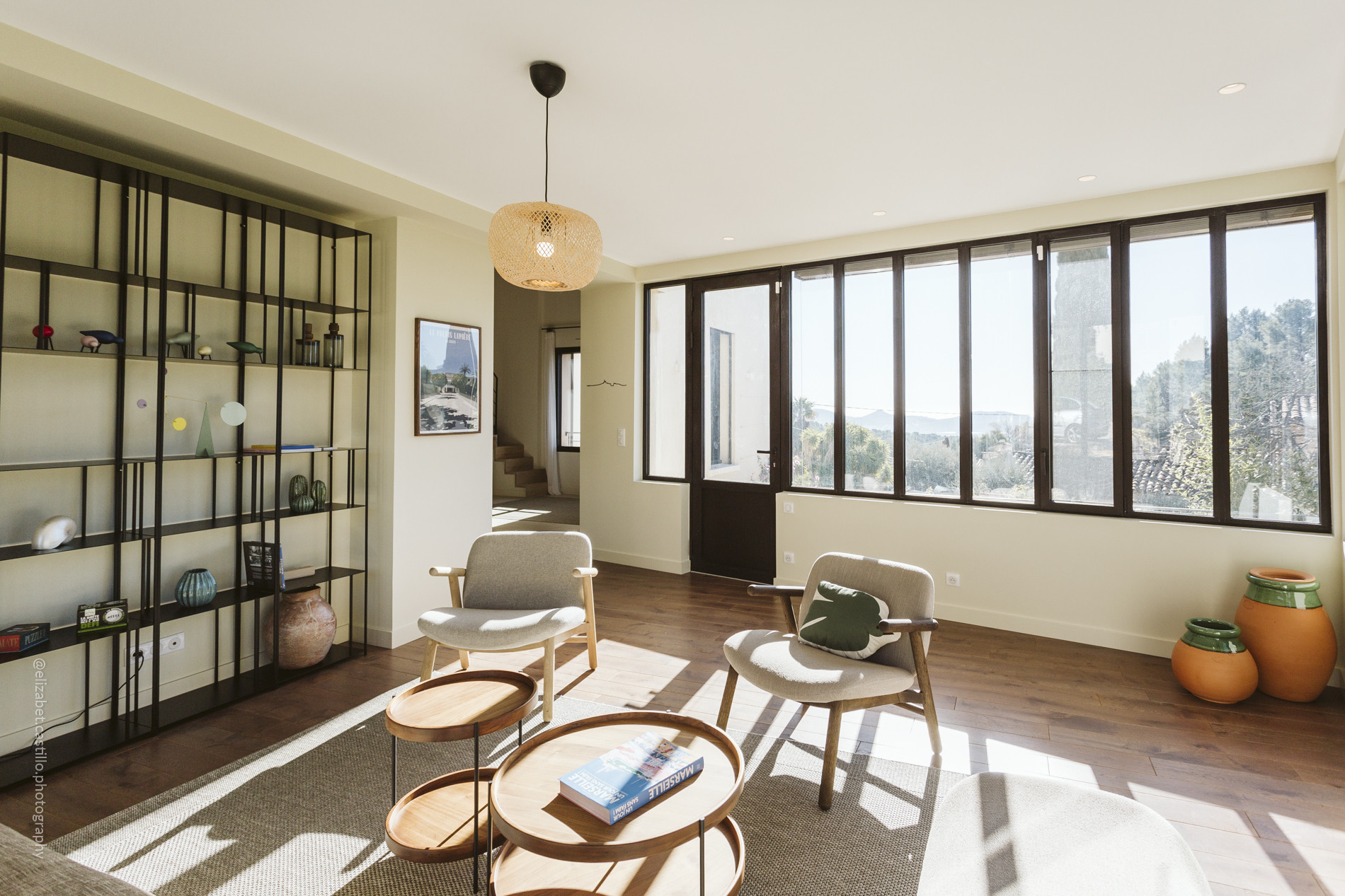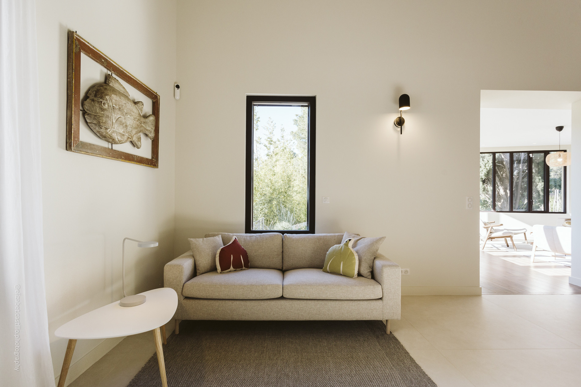 Avec sa vue imprenable sur la baie et le jardin, cet espace invite à la détente : installez-vous confortablement pour un moment de repos, un bon livre à la main, ou partagez un apéritif en fin de journée dans une ambiance chaleureuse.