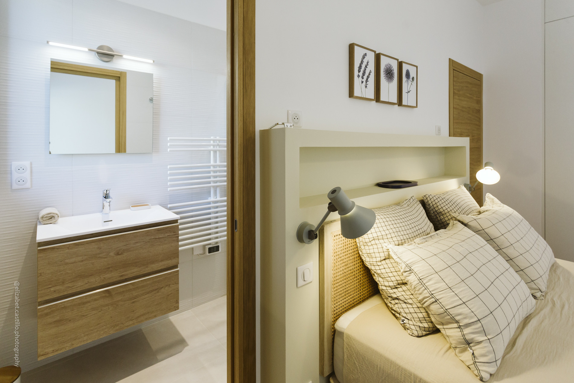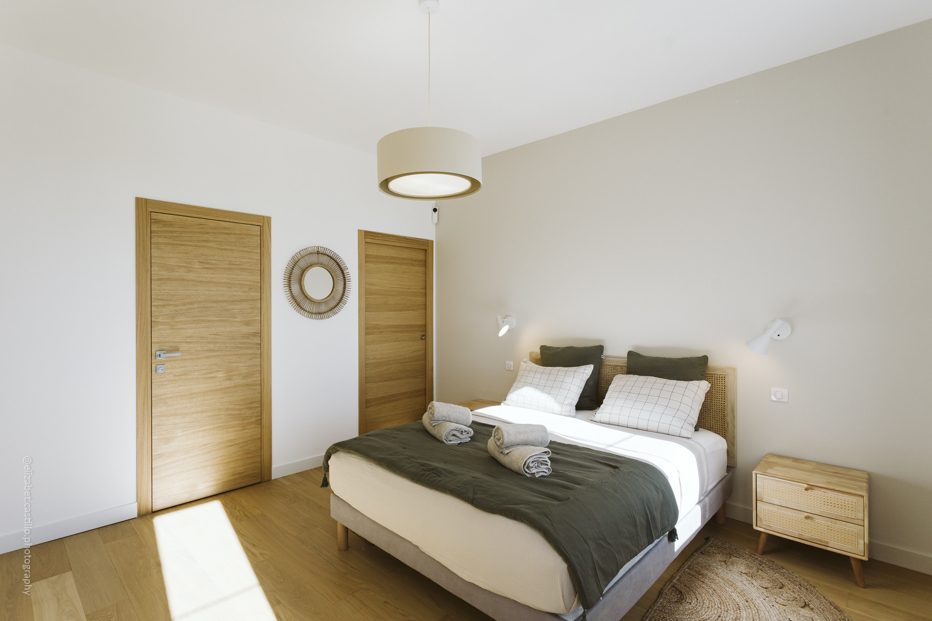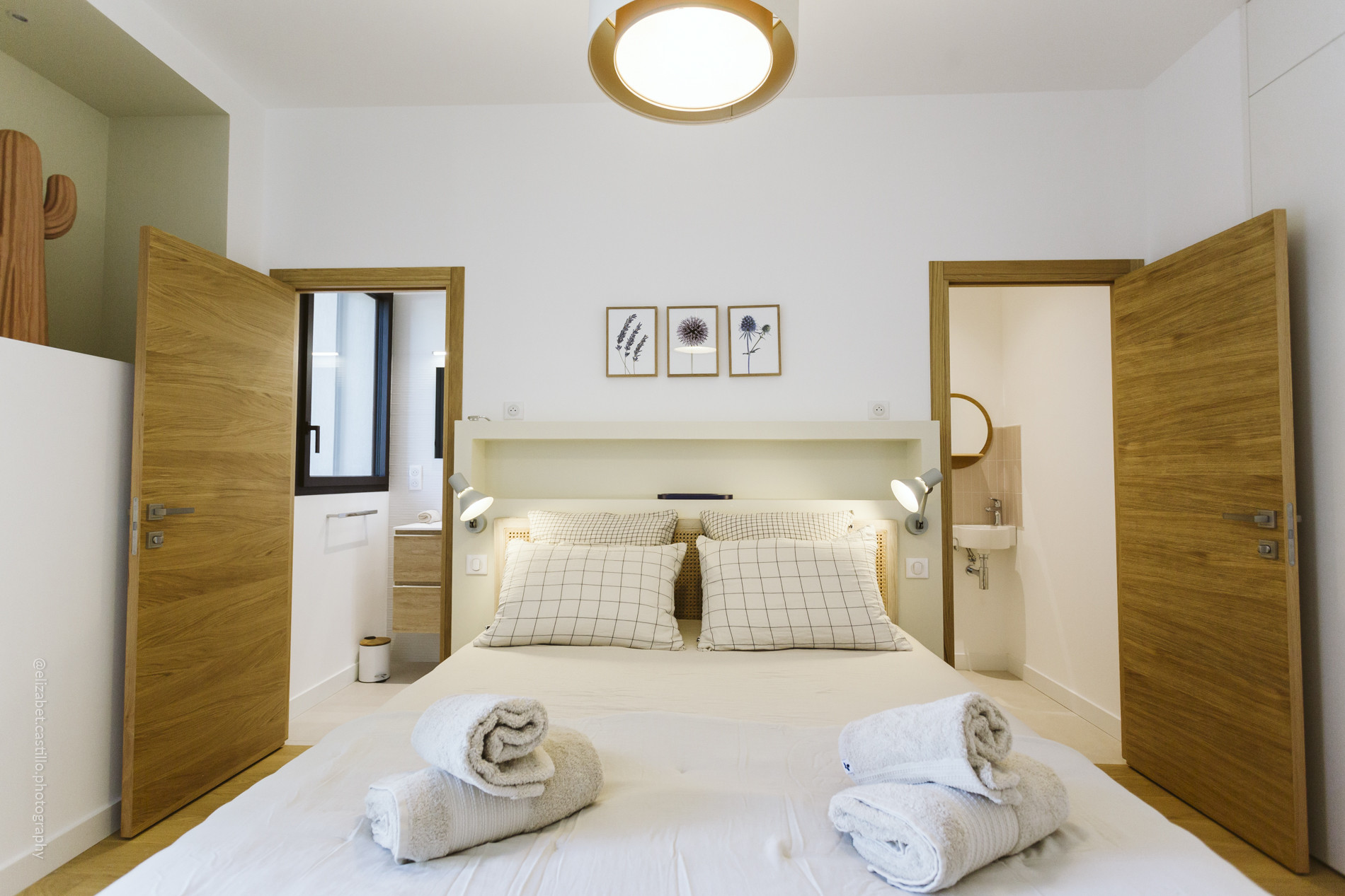 Tout d’abord, la suite « Méditerranée » avec vue mer, un lit double (160x200), placard, une salle d'eau avec douche, toilettes séparées.