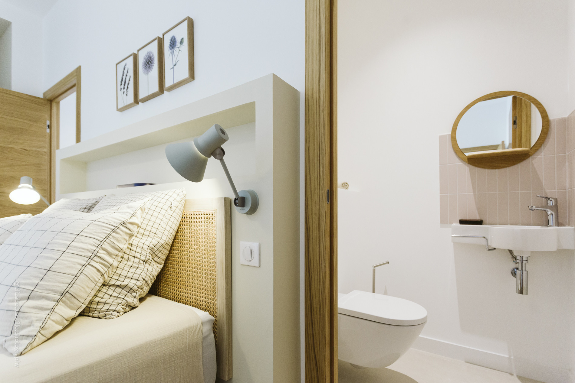 Les toilettes sont indépendantes (accessibles depuis le couloir).