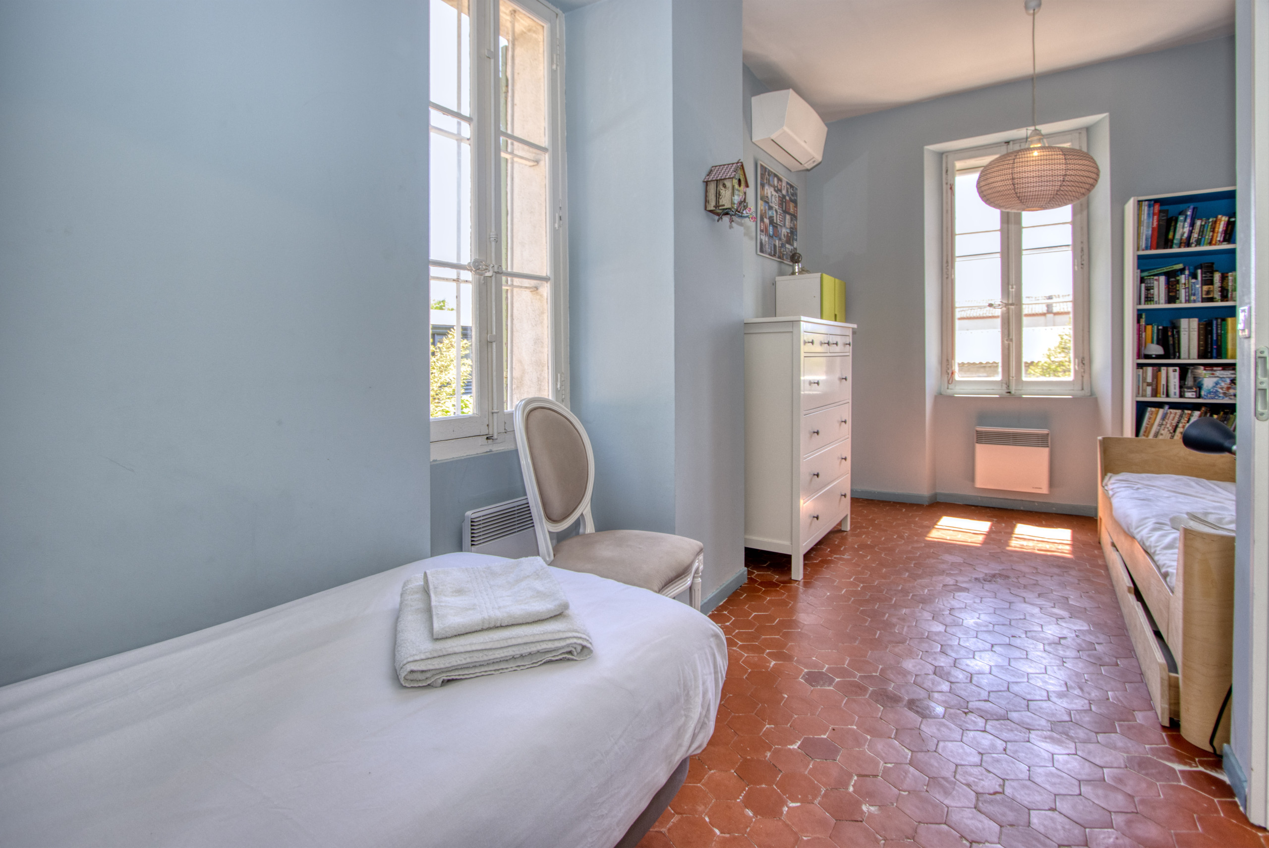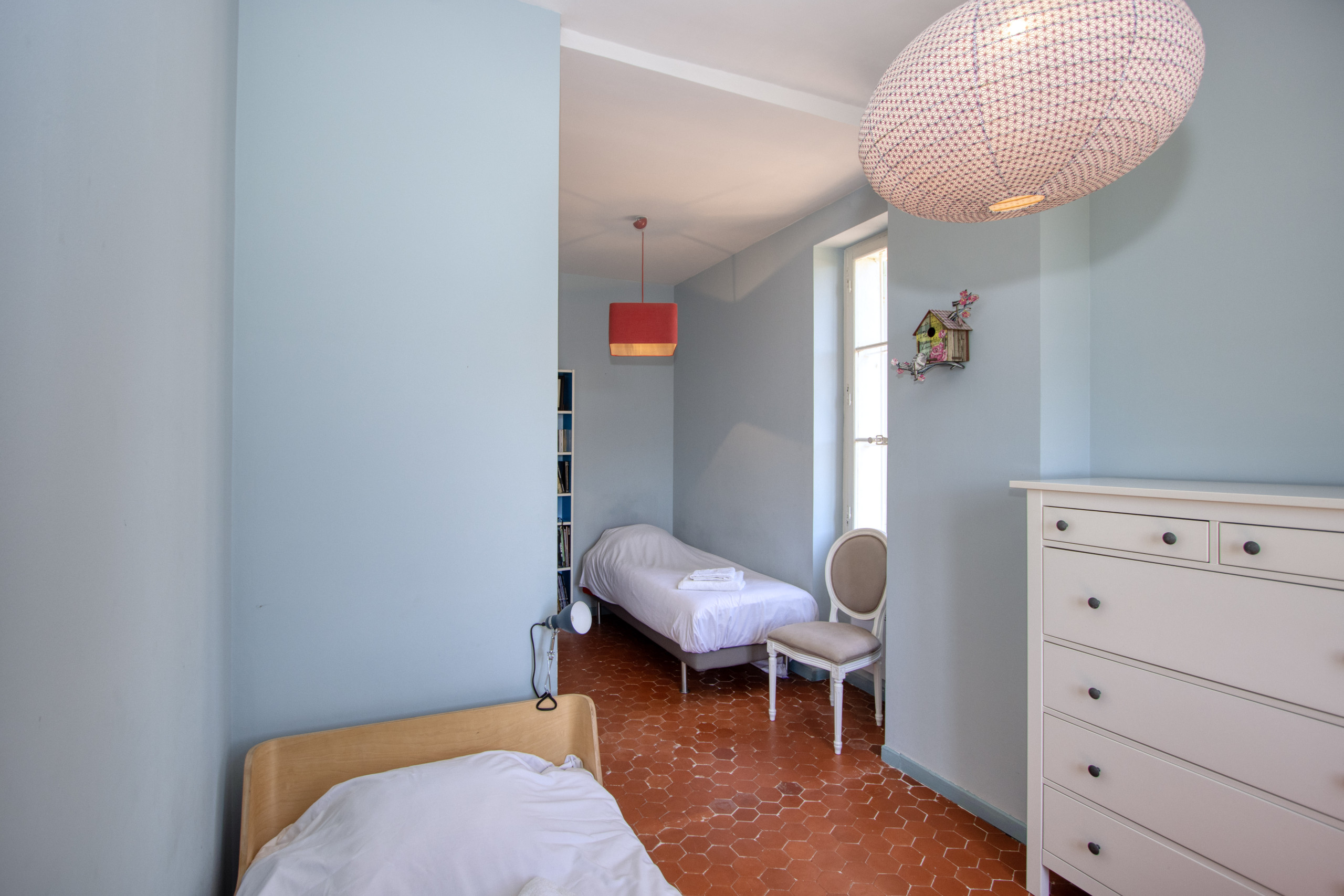 Tout d’abord, vous trouverez 2 chambres climatisées équipées de rangements et lumineuses avec leurs grandes fenêtres donnant sur le jardin. Toutes deux proposent 2 lits simples. Dans l’une d’entre elle, il est possible de regrouper les lits.