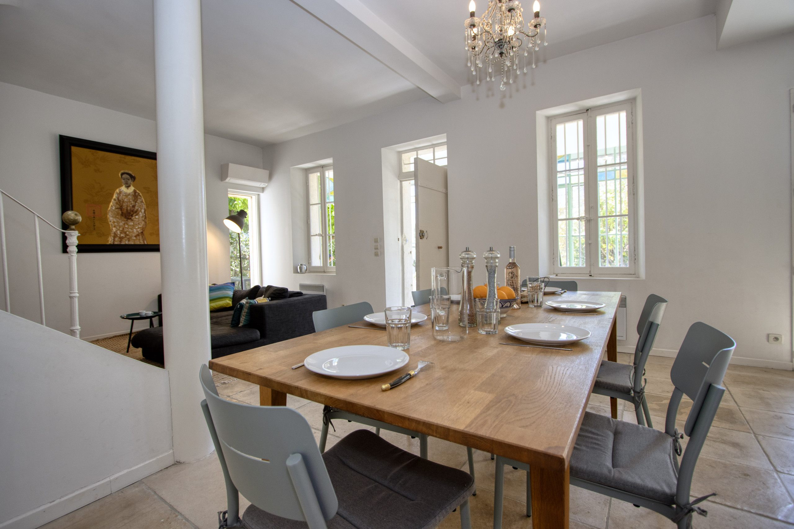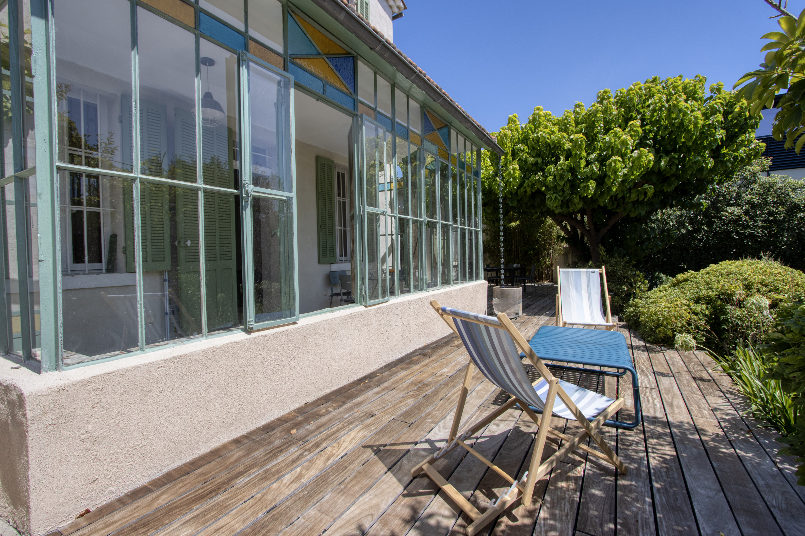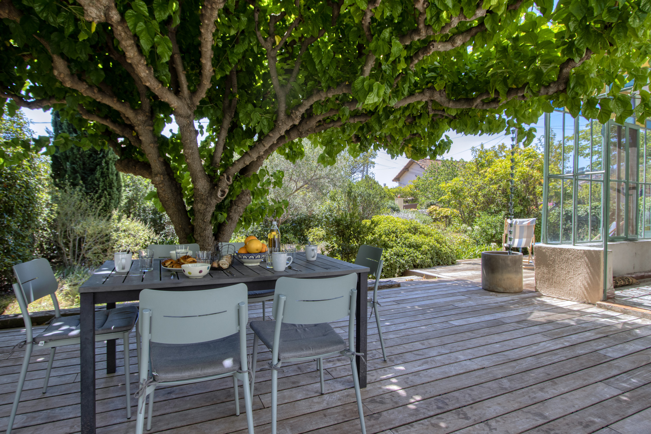 Profitez aussi pleinement du climat méditerranéen grâce à la terrasse, au jardin et aussi la magnifique verrière d’époque, idéale en intersaison.