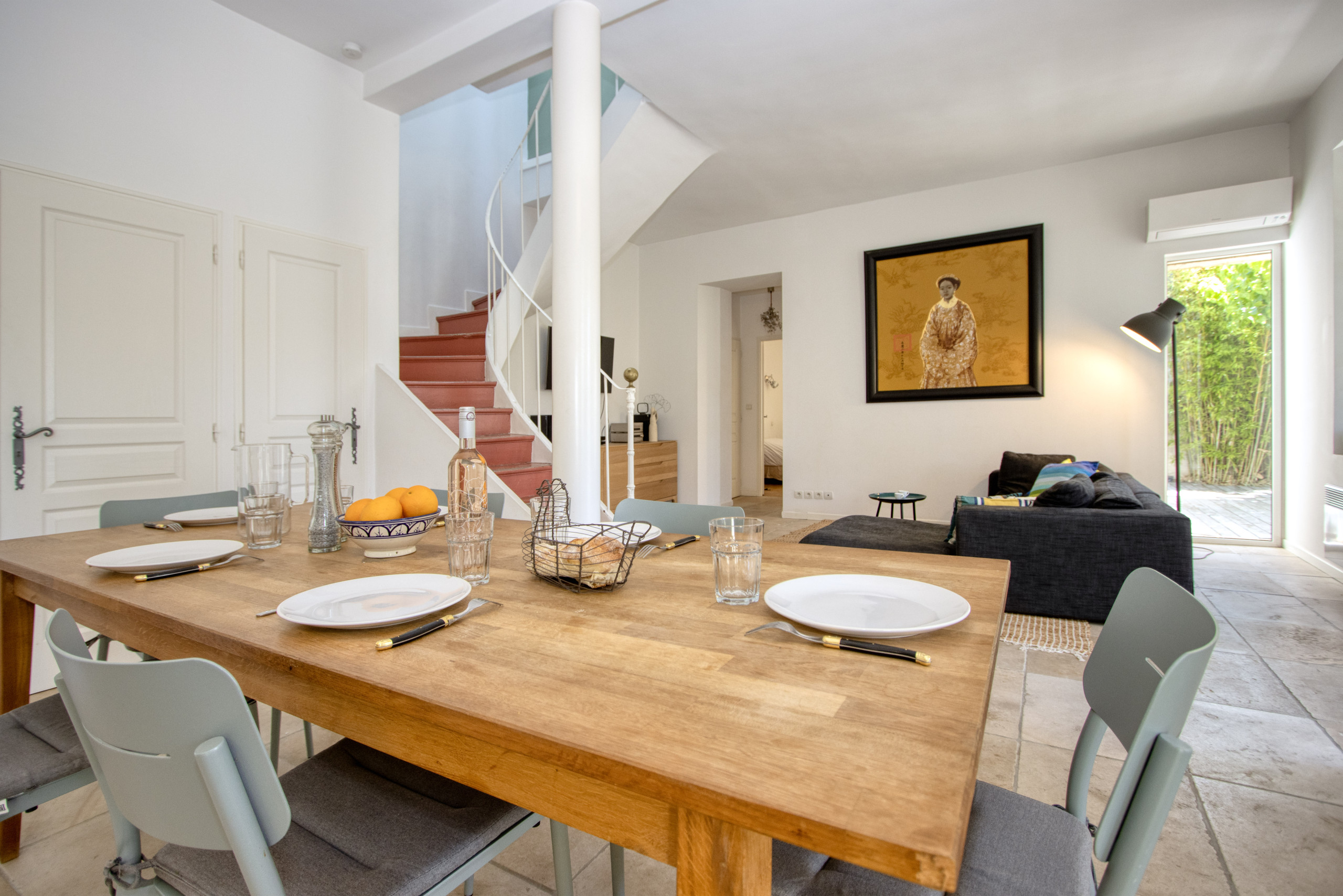 Idéale jusqu’à 6 personnes, cette maison entièrement climatisée située dans une impasse vous donne la sensation d’être coupée des tumultes de la ville. Malgré tout, vous n’êtes qu’à 600 m des quais, 400 m de la place du marché et 900m de la plage. Dépaysement et calme garantis !